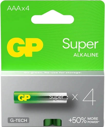 Alkaline batterijen GP Super LR03/AAA bieden een verbeterde levensduur en bescherming tegen lekken, allemaal in een milieuvriendelijke verpakking.
