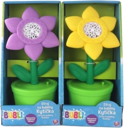 Beleef plezier met de bellenblazer in de vorm van een paarse bloem, die een groot aantal bellen tegelijk produceert en ideaal is voor kinderfeestjes of plezier in de tuin.