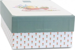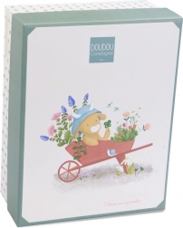 Het knuffeldoekje Koe Aneth uit de collectie “Mijn tuin” is ontworpen om de zintuigen van je kinderen te stimuleren met behulp van verschillende kleuren en texturen. Dankzij het schattige blauwe hoedje en de diverse oppervlakken nodigt het uit om te ontdekken. Het is verpakt in een mooie geschenkdoos, wat het een ideaal cadeau voor pasgeborenen maakt.