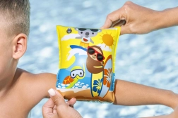 Lichte en veilige opblaasbare zwembandjes van BESTWAY met schattige motieven helpen kinderen van 3 tot 6 jaar de basis van het zwemmen onder de knie te krijgen. Ze bieden uitstekend drijfvermogen, eenvoudig opblazen en leeg laten lopen en comfortabel, flexibel materiaal voor prettig draagcomfort. Afmeting 23 × 15 cm, verpakking bevat 1 paar. Mix van designs – keuze niet mogelijk.