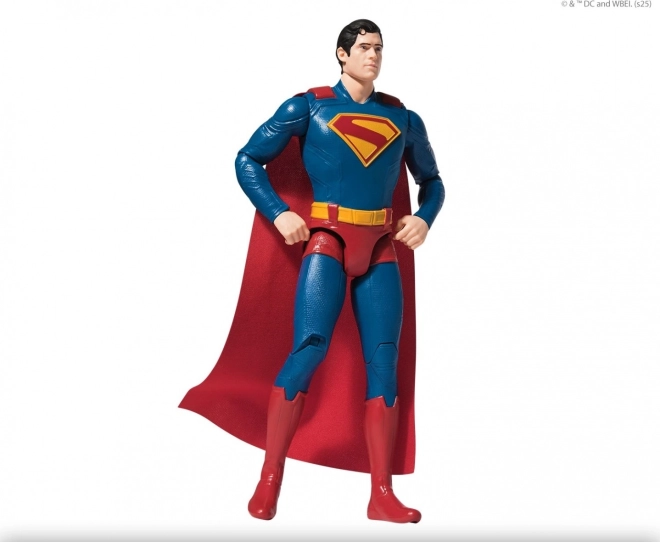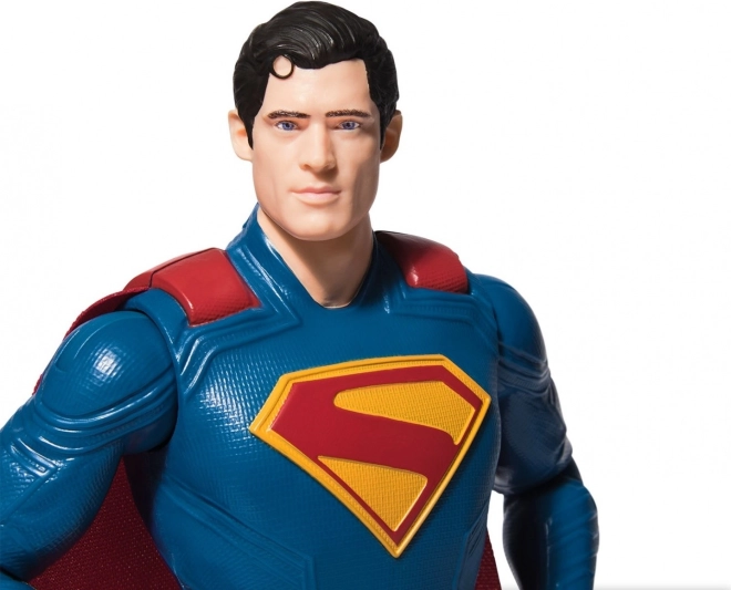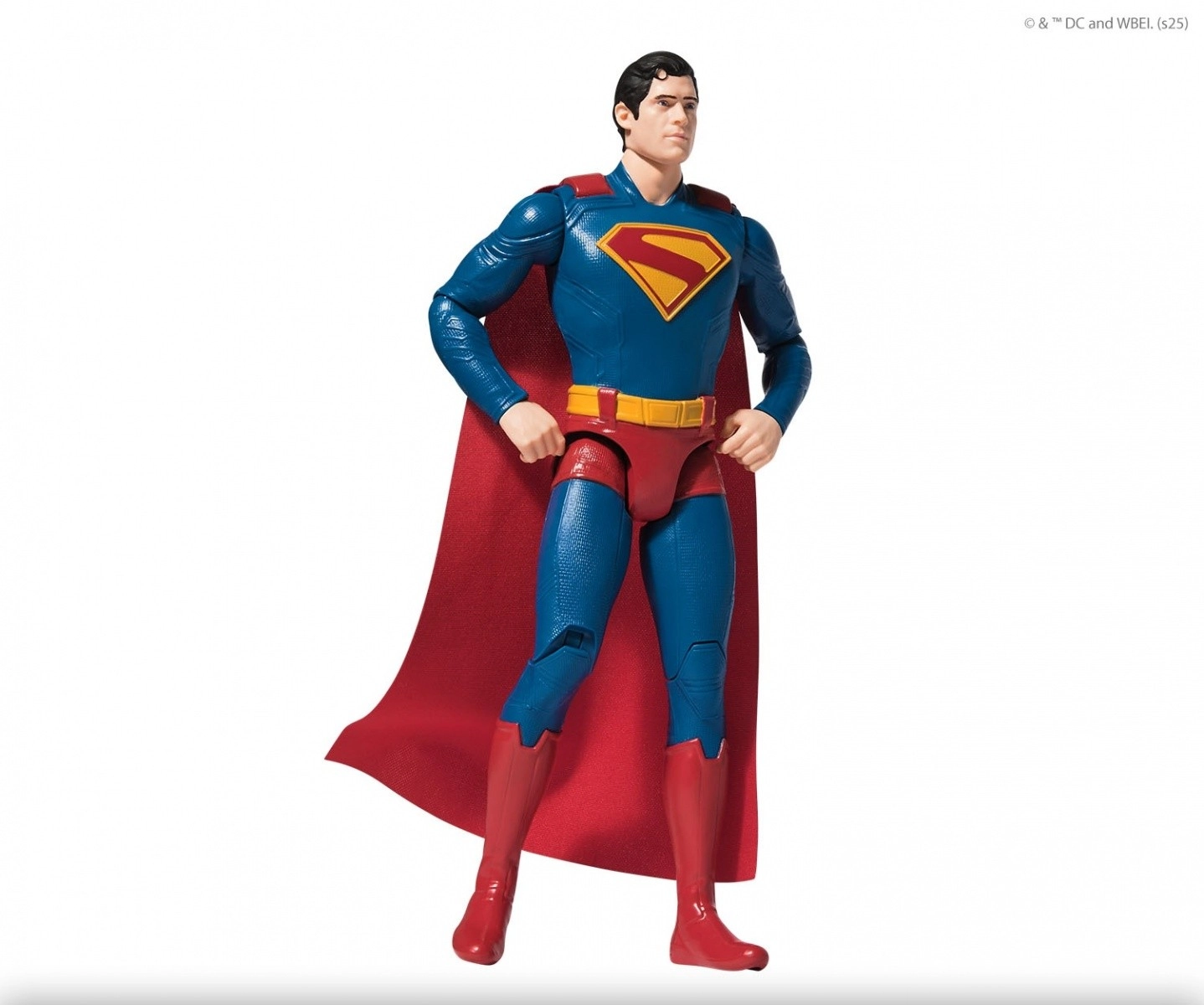 De getextureerde blauwe outfit, rode cape en het verhoogde “S”-embleem zorgen voor een authentieke comic-uitstraling.