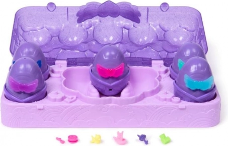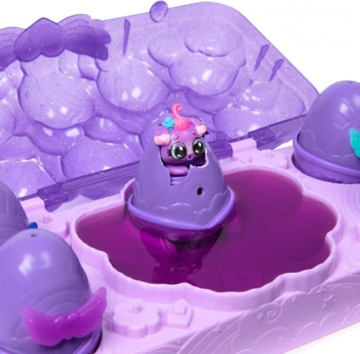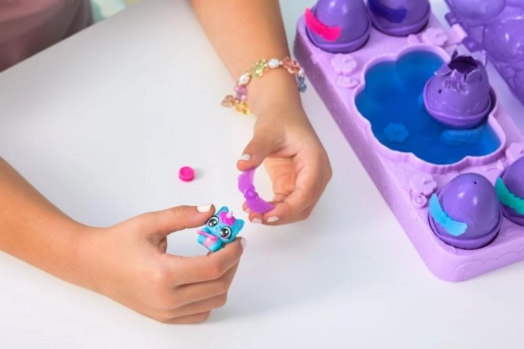 Open het glinsterende deksel, haal de vleugeltjes uit de eitjes, vul het nest met water en kijk hoe het water in enkele seconden van kleur verandert en je nieuwe vriendjes verschijnen. Neonkleuren geïnspireerd op middernachtstinten maken van elk uitbroedmoment een magisch gebeuren.