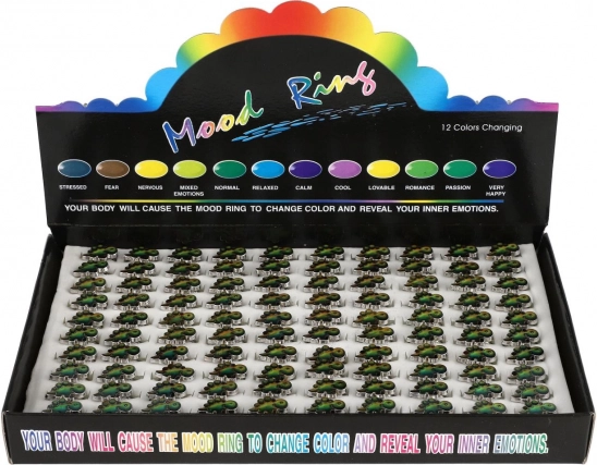 De ring is licht, comfortabel en gemaakt van duurzaam metaal met een glad oppervlak. De thermoactieve inlay creëert in het oog springende, glanzende en veranderende kleuren waar kinderen dol op zijn. De verpakking van 100 stuks is ideaal voor scholen, kinderactiviteiten, cadeausets, verkoopdozen en als kleine beloningen.