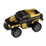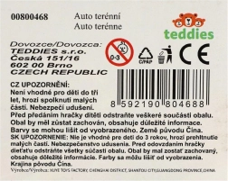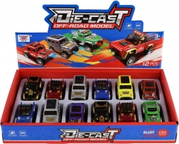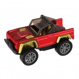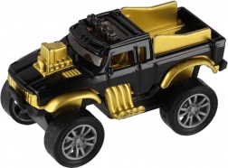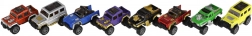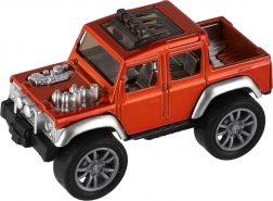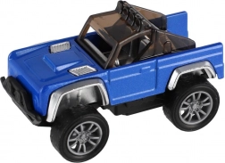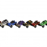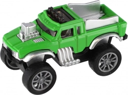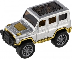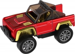 Dit mini offroad-autootje van 6,5 cm is ontworpen voor maximaal speelplezier in een klein formaat. De robuuste combinatie van metalen en kunststof onderdelen zorgt voor duurzaamheid, terwijl de opvallende wielen en het verhoogde chassis de terreinlook benadrukken. Dankzij de pull-back aandrijving rijdt het na het terugtrekken vanzelf weg en zorgt het voor dynamische ritten.