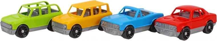 Een leuke set van vier kunststof autootjes met vrije loop die kleine chauffeurs al vanaf 18 maanden zal plezieren. Lichte, kleurrijke en eenvoudig te bedienen wagentjes met afgeronde randen ondersteunen de fijne motoriek, het onderscheiden van kleuren en vormen en stimuleren de fantasie tijdens het spel. Het compacte formaat past in kleine handjes en de stevige uitvoering kan dagelijks rijden aan.