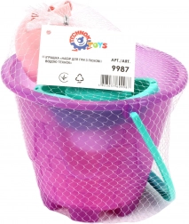 Vrolijke kunststof set voor zand en water met emmer, molentje en gereedschap, ideaal voor strand, tuin en speeltuin. Stimuleert fijne motoriek, creativiteit en het leren van de principes van water- en zandbeweging. Licht en veilig ontwerp voor kleine kinderhandjes, praktische opberging in een net en volop plezier vanaf 1 jaar.