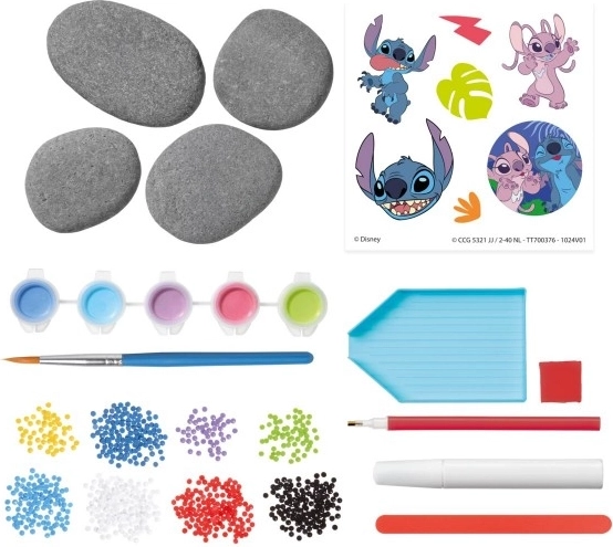 Deze leuke creatieve set zorgt voor uren knutselplezier. Dankzij wrijfstickers en circa 400 stuks decoratieve steentjes maak je eenvoudig originele steentjes geïnspireerd op het geliefde Stitch-motief. Als de stenen uit de verpakking op zijn, kun je verder werken met vondsten uit de natuur.