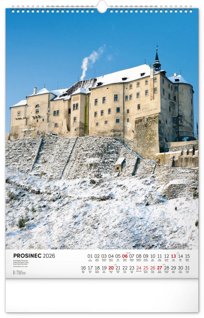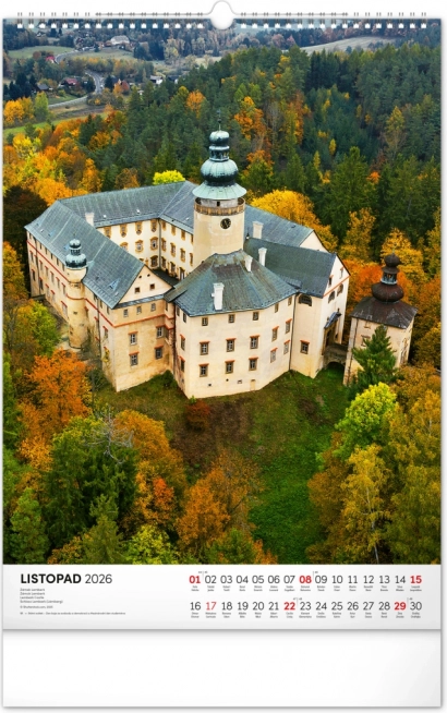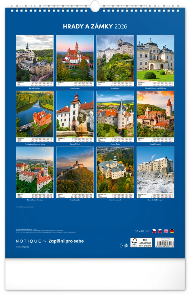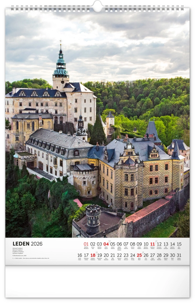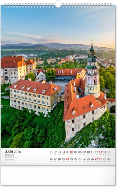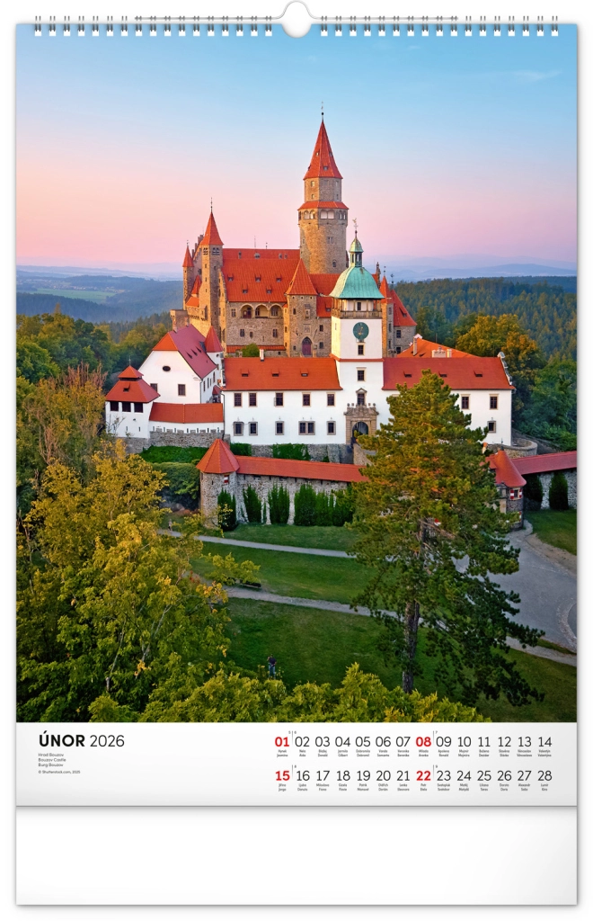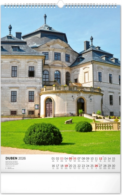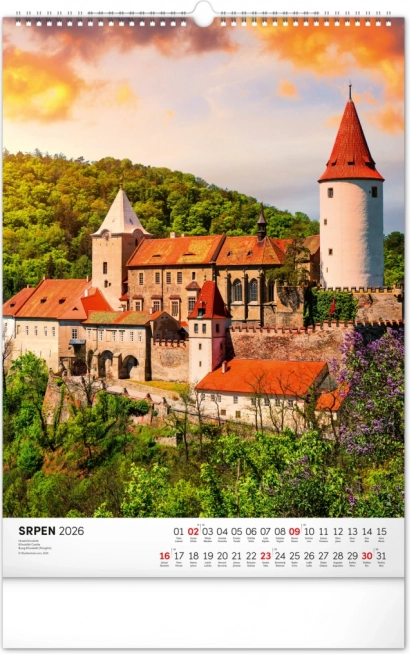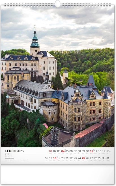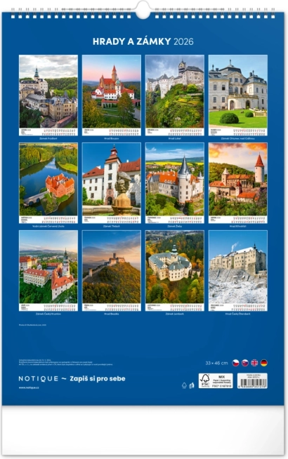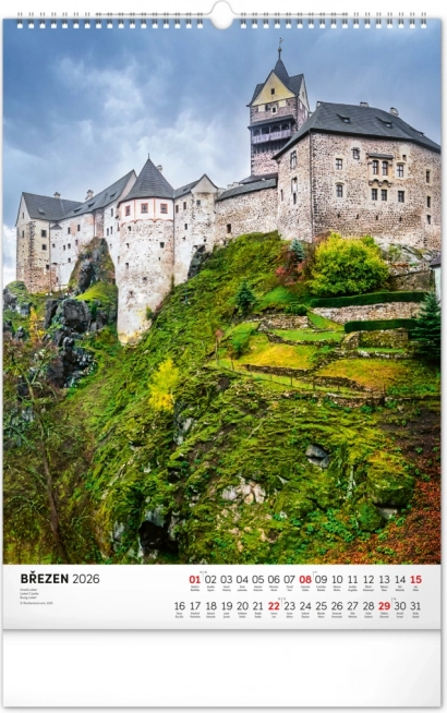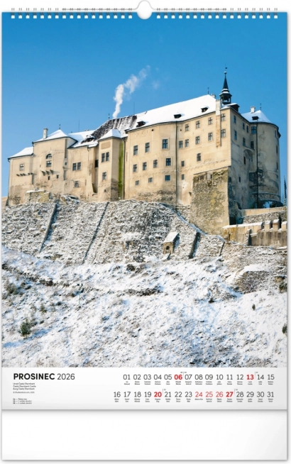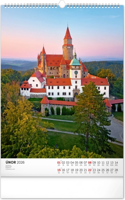 Ontdek de charme van historische monumenten met onze muurkalender Kastelen en Paleizen 2026. Geniet van prachtige kleurenfoto’s van kastelen en paleizen zoals Loket, Lednice, Hluboká en Bouzov.