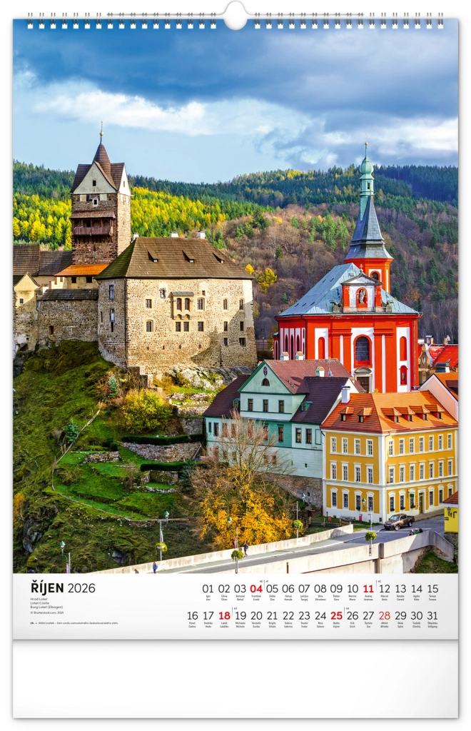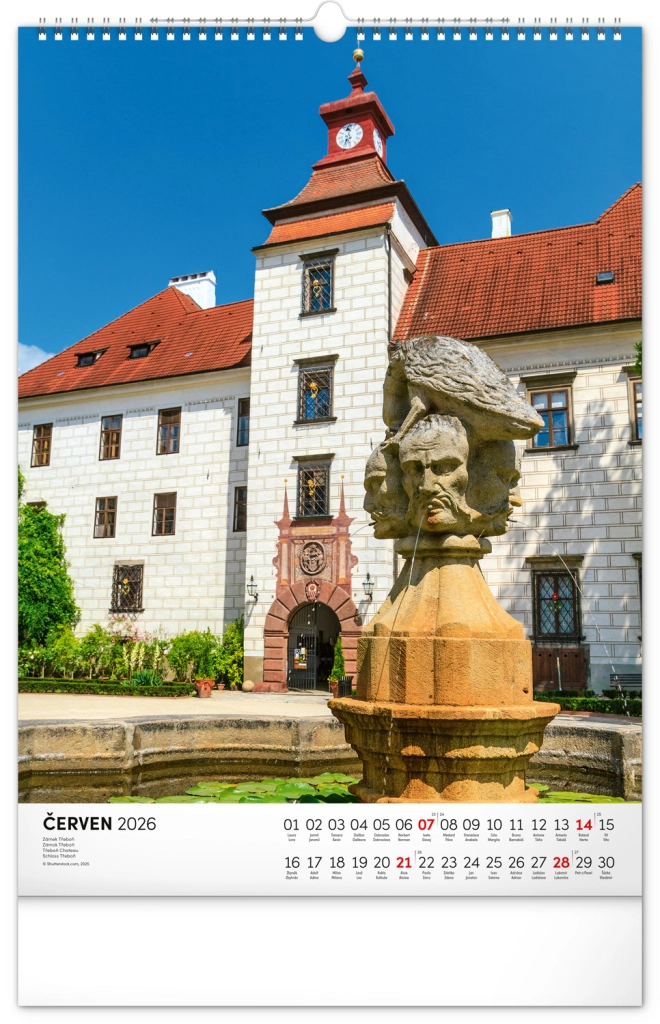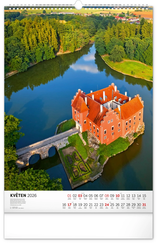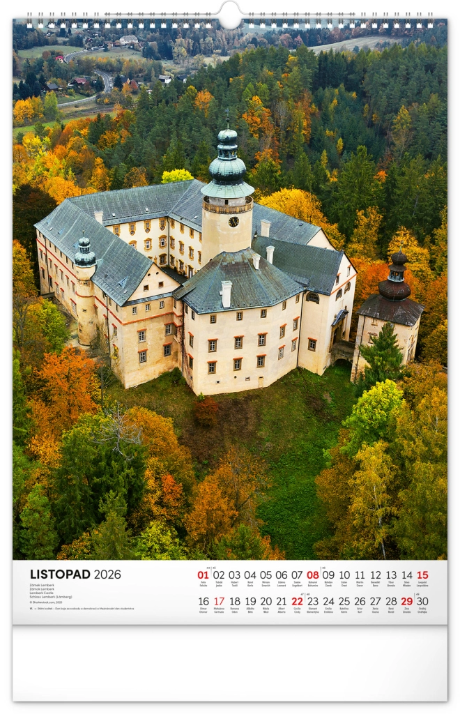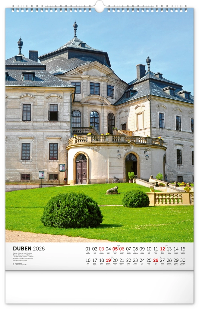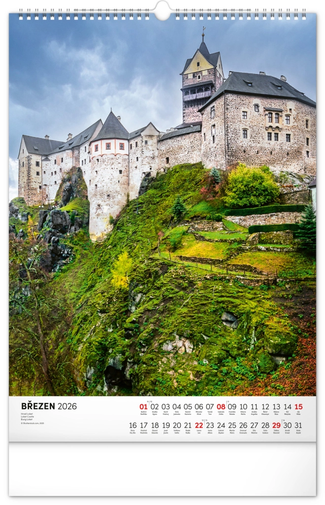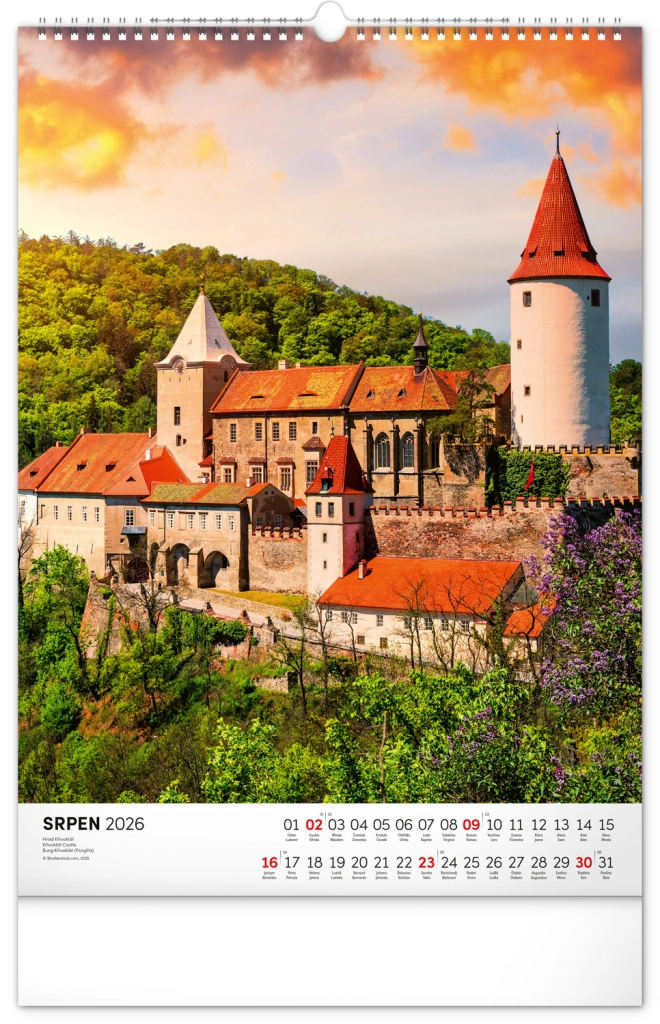 Ontdek de charme van historische monumenten met onze muurkalender Kastelen en Paleizen 2026. Geniet van prachtige kleurenfoto’s van kastelen en paleizen zoals Loket, Lednice, Hluboká en Bouzov.