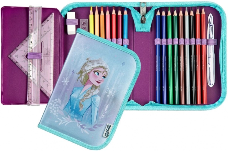 De Frozen schooletui van Undercover brengt een ontwerp uit de populaire film Frozen, geliefd bij zowel kleine als grotere kinderen. Gemaakt van duurzaam polyester, wat zorgt voor een lange levensduur en bescherming van de inhoud. Met afmetingen van 14 x 20 x 3 cm biedt hij voldoende ruimte voor een complete set schoolbenodigdheden, waaronder 14 kleurpotloden, potloden, een liniaal en andere hulpmiddelen.