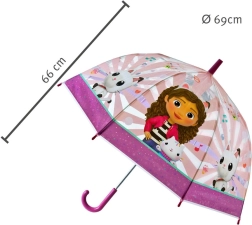 De Gabby's Dollhouse paraplu is speciaal ontworpen voor kinderen, met de nadruk op veiligheid en comfort. De koepelvorm biedt uitstekende bescherming tegen de regen, terwijl de motieven van Gabby, Pandy Paw en Cat Elf voor speelsheid zorgen. Hij is ideaal voor kinderen vanaf 3 jaar dankzij het eenvoudige handmatige openen en sluiten, dat veilig is en is afgestemd op de behoeften van kinderen. Het afgeronde handvat zorgt voor een comfortabele grip, wat je zult waarderen tijdens lange, regenachtige wandelingen.