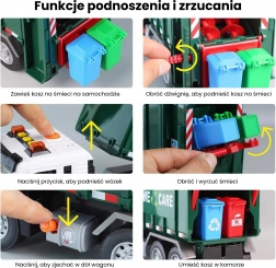 Interactieve vuilniswagen "Purifier" op schaal 1:10 is een geweldig stuk speelgoed dat zowel leuk als leerzaam is. De realistische details, beweegbare onderdelen en licht- en geluidsfuncties zorgen voor boeiend onderwijs over afvalscheiding.