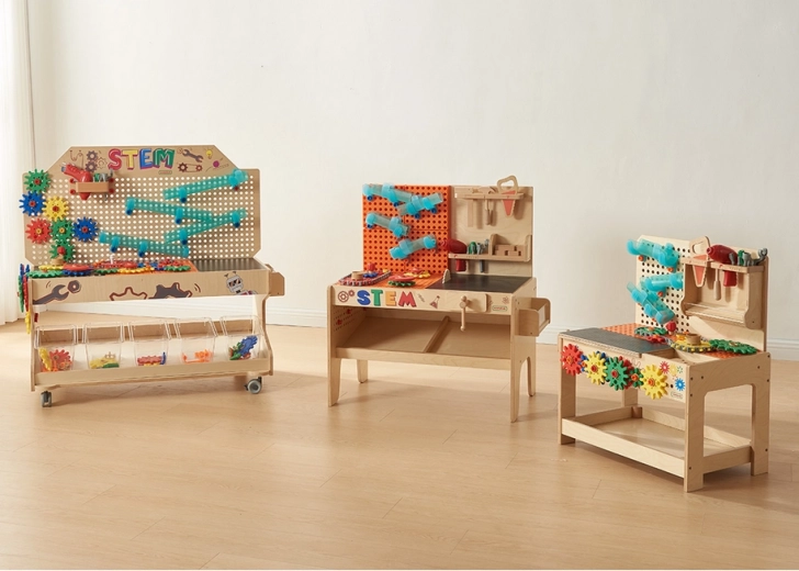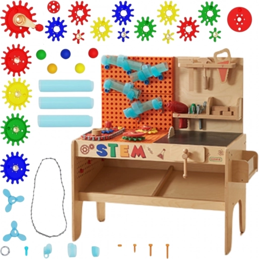 Ontdek de robuuste houten XXL werkbank van MASTERKIDZ – de ideale STEM-hulp voor peuterspeelzalen, scholen en thuisonderwijs. Stimuleert creativiteit, fijne motoriek en technische vaardigheden van kinderen. Dankzij het pegboard-werkblad, tandwielen, ketting, katrollen en gereedschap ervaren kinderen spelenderwijs de principes van mechanica, engineering en natuurkunde en bouwen ze werkende overbrengingen en knikkerbanen.