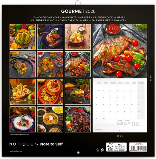 Notitiecalender Gourmet 2026 - luxueuze gerechten en ruimte voor je plannen, ideaal voor keuken of eetkamer. Zestalige kalender.