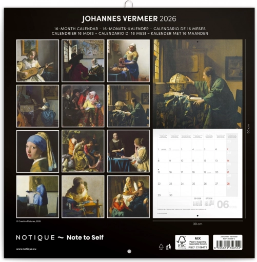 Ontdek de sfeer en lichteffecten die schilder Johannes Vermeer beroemd maakten met deze prachtige kalender. Deze kalender bevat: