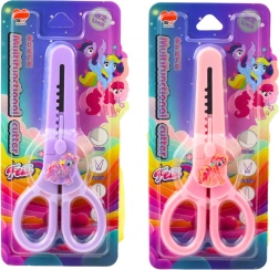 De schaar met beschermhoes en decoratief paardenmotief is ideaal voor de jongste gebruikers. De ergonomische handgrepen zijn afgestemd op kleine handjes en het decoratieve paardje met glinsterende details geeft een unieke uitstraling. Perfect voor thuis en op school voor knutselen, uitknippen en creatieve projecten. De geïntegreerde messenbescherming voorkomt ongelukken en maakt veilig opbergen in etui, rugzak of lade mogelijk.
