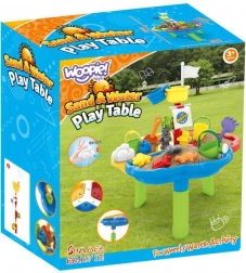 De tafel is verdeeld in drie secties - apart voor water, zand en speelruimte. Extra 13 accessoires brengen nog meer plezier! De set is ideaal voor zowel thuis als in de tuin, bijvoorbeeld op het strand of op de binnenplaats.