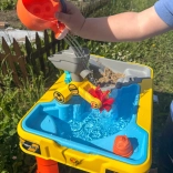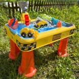Ontdek spel en leren met deze kleurrijke tafelset voor spelen met water en zand in een bouwthema. Kinderen kunnen beide werelden tegelijk verkennen, een kraan bedienen, waterrampen laten lopen en rijden met mini-bouwvoertuigen. De set is ideaal voor tuin en huis en stimuleert samenspel, creativiteit en fijne motoriek. 2-in-1 water + zand, bouwthema, functionele accessoires, stabiele constructie, vanaf 3 jaar.