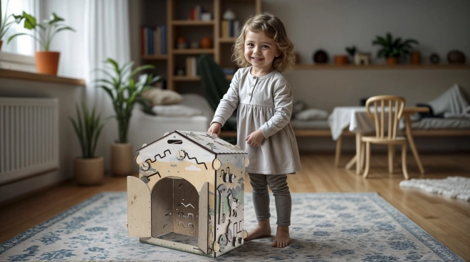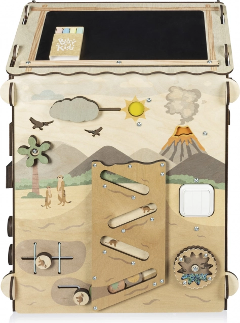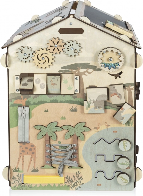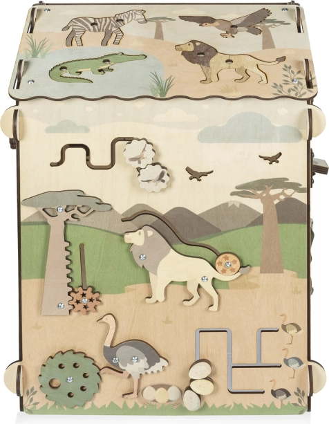 Het grote safarihuis is meer dan een speelgoed – het is een schuilplek, basis en speelruimte. Dankzij de doordachte activiteiten aan alle zijden trainen kinderen oog-handcoördinatie, vingerbehendigheid en leren ze de wereld van dieren op speelse wijze kennen. De robuuste houten constructie zorgt voor veiligheid en een lange levensduur.