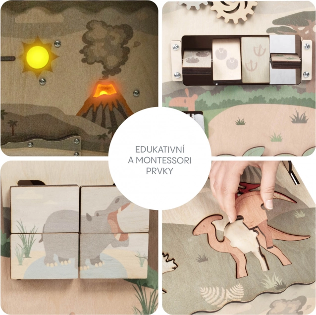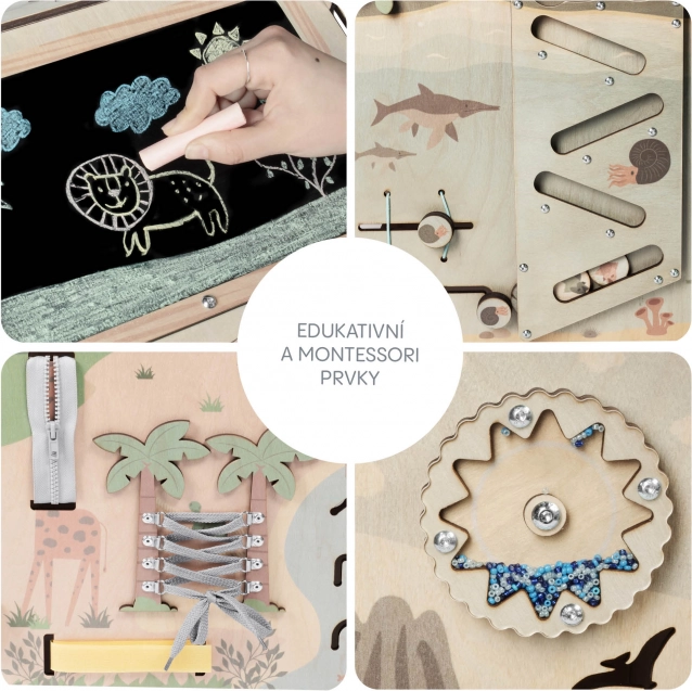 Doolhoven, tandwielen, schakelaars, ritsen en veters trainen oog-handcoördinatie, vingerbehendigheid en geduld bij het oplossen van taken.