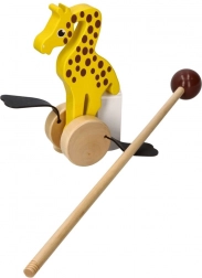 Deze hoogwaardige houten giraf is de ideale metgezel voor kinderen vanaf 18 maanden. Hij blinkt uit door een stevige constructie, een glad oppervlak en een vrolijk design dat kinderen motiveert om te bewegen. Tijdens het duwen bewegen de zij-“pootjes” bij de wielen ritmisch, wat een aantrekkelijk visueel effect creëert en de natuurlijke nieuwsgierigheid prikkelt.