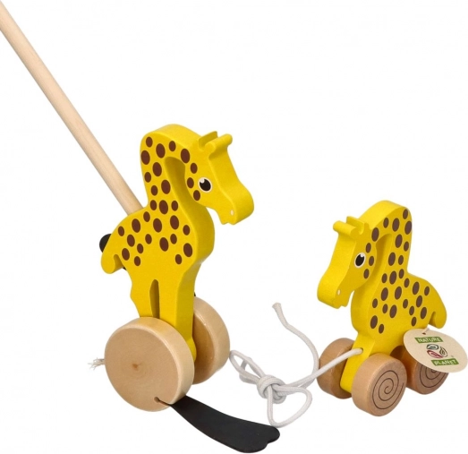 Houten duw-giraf Nature Planet voor kinderen vanaf 18 maanden. Ondersteunt eerste stapjes, motoriek en evenwicht. Kwalitatieve afwerking, CE-certificering.