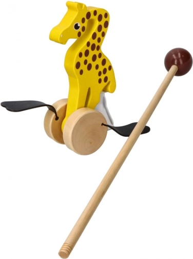 Een schattige houten duw-giraf van het merk Nature Planet die elke peuter zal verrukken. Tijdens het rijden wiebelt hij vrolijk en ondersteunt de eerste stapjes, ontwikkelt de grove motoriek en coördinatievaardigheden. Dankzij de stabiele houten wieltjes en de comfortabele stang is het spel veilig en leuk, zowel binnen als buiten.