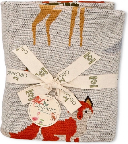 Deze design babydeken van biologische katoen combineert zachtheid, ademend vermogen en een moderne uitstraling. Het schattige patroon met vos, hert en konijntje zal zowel kinderen als ouders aanspreken, terwijl de hoogwaardige brei een aangename warmte biedt zonder oververhitting.