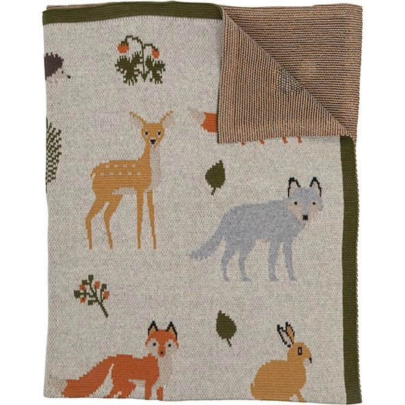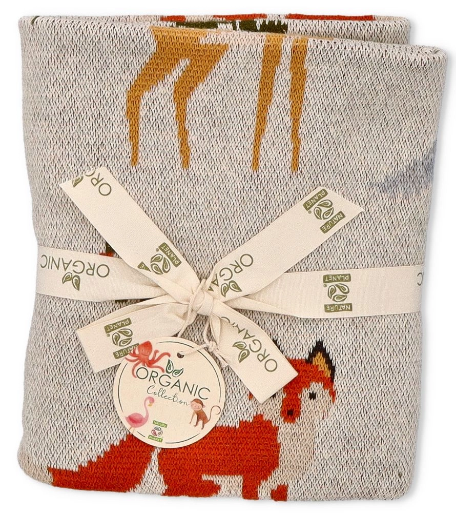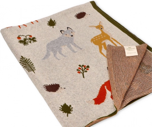 gebreide babydeken van biologische katoen bosdieren 82 × 104 cm
