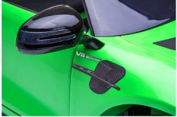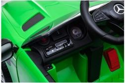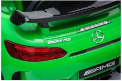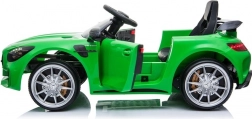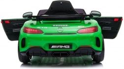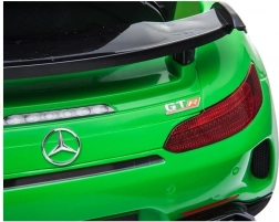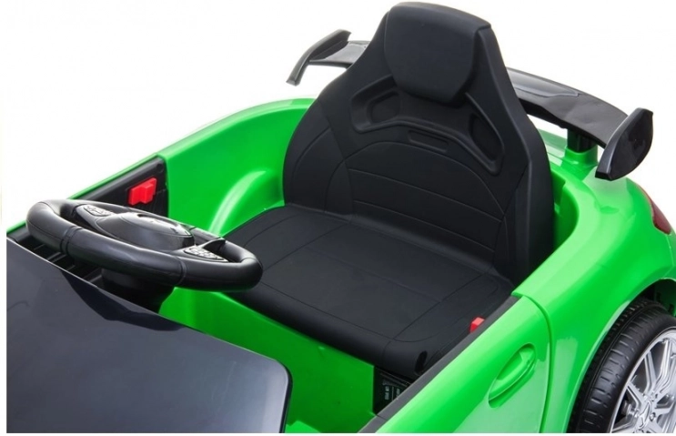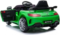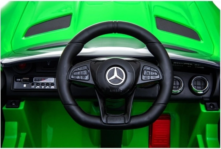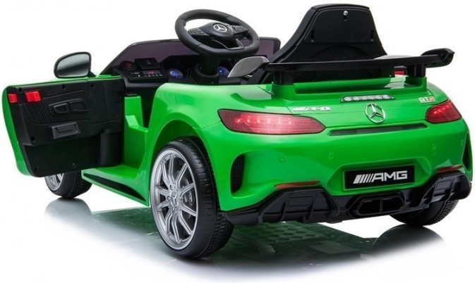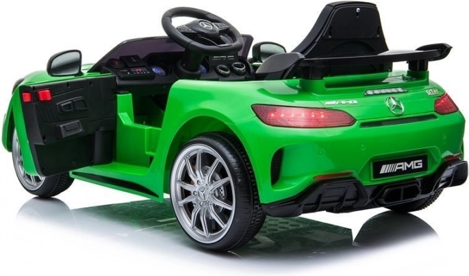 De groene Mercedes GTR is de ideale elektrische auto voor kleine liefhebbers en biedt: