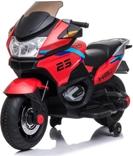 Deze sportieve versie van de kindermotor trekt de aandacht niet alleen door zijn opvallende kleurstelling, maar ook door de stevige constructie en de afwerking in de stijl van echte motorfietsen. Verchroomde elementen in de stijl van een uitlaatsysteem geven de motor extra uitstraling en spreken elk kind aan. Zijwieltjes maken het besturen eenvoudiger voor kinderen die nog leren hun evenwicht te bewaren. Nog nooit was dit plezier zo eenvoudig!