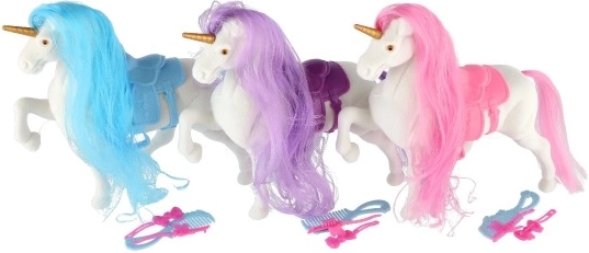 Prachtige eenhoorn met kampeerbare manen en accessoires voor kinderen vanaf 3 jaar. Zadel, stijlvolle accessoires en urenlang speelplezier.