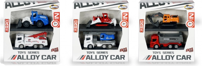 Metalen bouwvoertuigen met terugtrekmechanisme, set van 2 modellen, 3 varianten, 13,9x4,9x15,8 cm. Ideaal voor fans van bouwmachines.