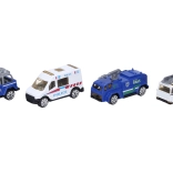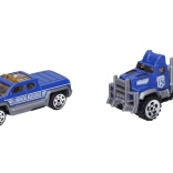 Klassieke politiewagen met vrijlopende wielen van 7,5 cm, ideaal speelgoed voor kleine liefhebbers van vervoersmiddelen. Verkrijgbaar in zes varianten in een verpakking van 24 stuks.