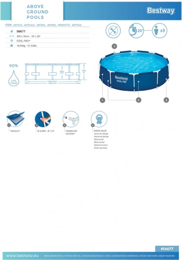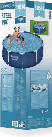 Het Bestway tuinzwembad met een diameter van 306 cm en een hoogte van 76 cm is de ideale keuze voor warme dagen. De constructie maakt vullen tot 90% water mogelijk, wat neerkomt op een inhoud van 4... Meer tonen