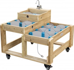 De mobiele watertafel laat kinderen experimenteren met water en observeren hoe het zich gedraagt onder verschillende omstandigheden. Ideaal voor kleuters die graag ontdekken en nieuwe dingen leren. De tafel stimuleert natuurlijke nieuwsgierigheid, coördinatie en logisch denken.