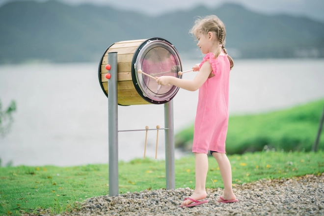 De XXL buitentrommels veranderen elke plek in een muziekzone. Kinderen kunnen samen ritme ontdekken, eigen composities maken en hun gehoor, motoriek en durf om op te treden ontwikkelen. De dubbelzijdige uitvoering biedt meer klankvariaties en urenlang speelplezier.