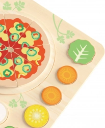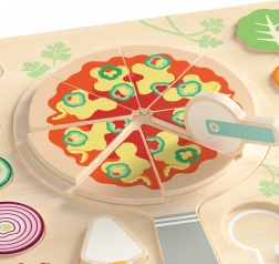 Welkom in de wereld van smaken en creatieve pret! De houten puzzel ‘Pizza Puzzle Board’ is het perfecte speelgoed voor kleine koks. Dankzij de kleurrijke ingrediënten kunnen kinderen hun eigen pizzacreaties maken en zo hun verbeelding, fijne motoriek en oog-handcoördinatie ontwikkelen.