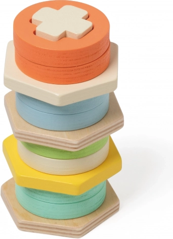 Ontdek de magie van lerend spelen met deze Montessori toren voor het sorteren van vormen en kleuren. Kinderen zullen de pastelgekleurde houten elementen geweldig vinden, gemaakt van hoogwaardig hout en ideaal voor hun kleine handjes. Dit interactieve speelgoed helpt hun vaardigheden te ontwikkelen en stimuleert logisch denken.