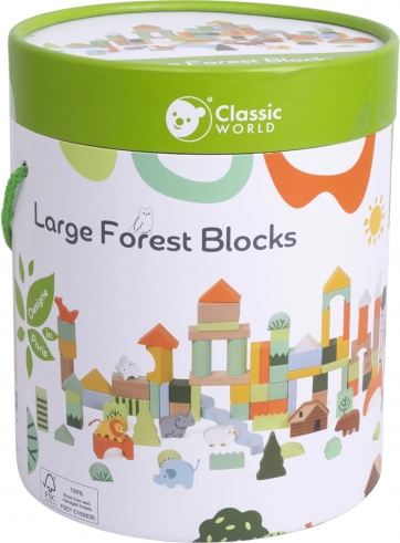 De houten blokken Boswereld van Classic World zijn ideaal voor zowel zelfstandig als groepsspel. Deze set van 100 onderdelen bevat blokken in verschillende vormen en kleuren, inclusief motieven van bomen, dieren en natuurelementen. De hoogwaardige afwerking garandeert duurzaamheid en veiligheid tijdens het spelen.