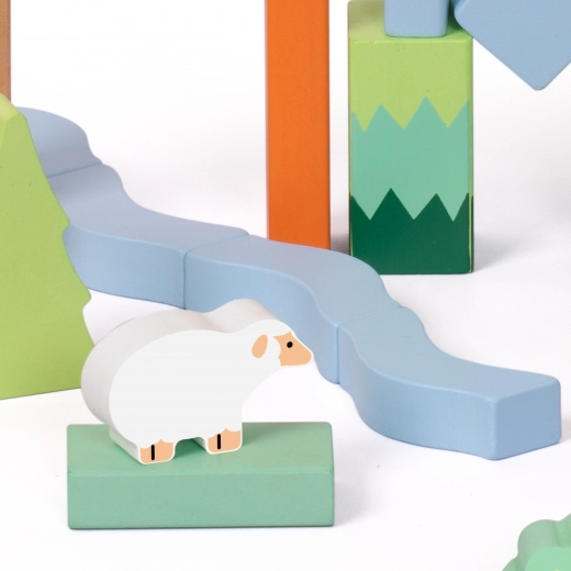 Deze set houten blokken bevat 50 kleurrijke stukken in verschillende vormen die bomen, dieren en boslandschappen uitbeelden. De hoge afwerkingskwaliteit zorgt voor langdurige duurzaamheid en veiligheid tijdens het spelen. De blokken zijn milieuvriendelijk en bevatten geen schadelijke stoffen.