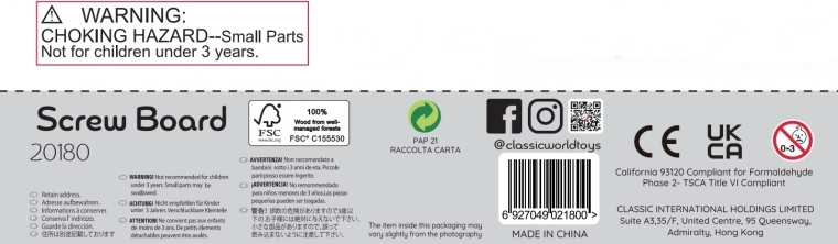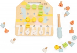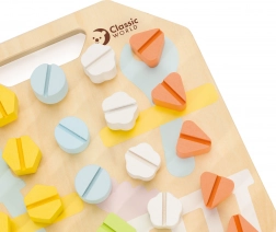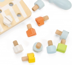 Houten bord met kleurrijke bouten van Classic World is een speelgoed bedoeld om kinderen te ontwikkelen via spel. Kinderen kunnen verschillende vormen maken met behulp van bouten, wat bijdraagt aan de ontwikkeling van hun coördinatie en motorische vaardigheden.