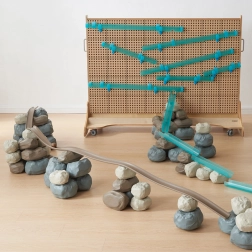 Elastische baan met rubberen bouwstenen is een lichte en veilige bouwset gemaakt van flexibel plastic. Ontworpen voor creatief spel, maakt het het bouwen van steunpunten, obstakels en diverse structuren voor racebanen en experimenten met zwaartekracht mogelijk.