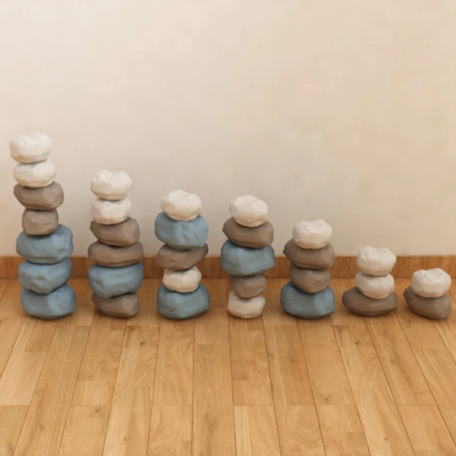 - 40 bouwstenen in 3 verschillende maten en kleuren
