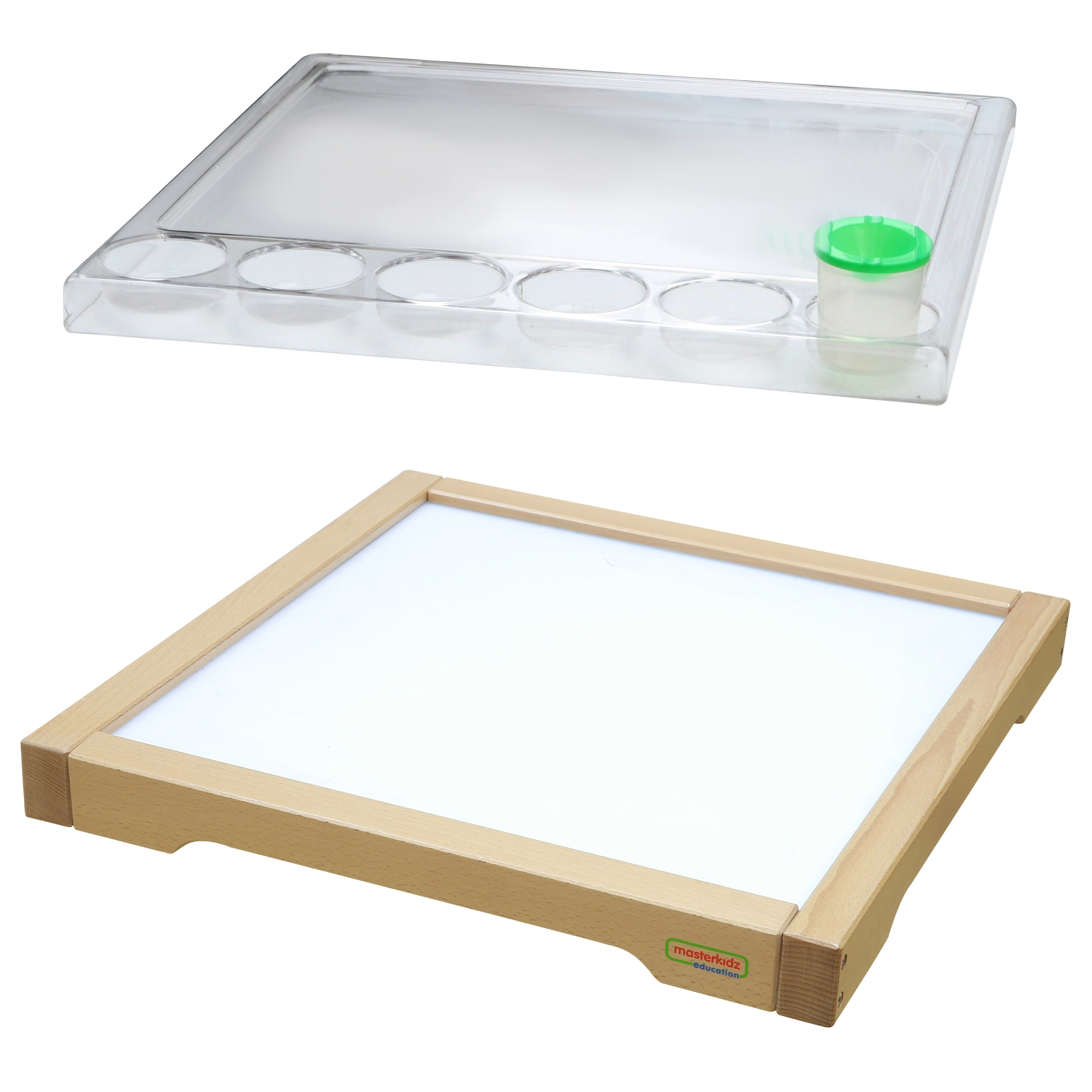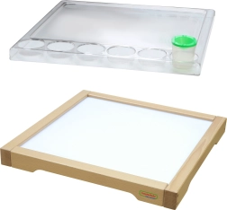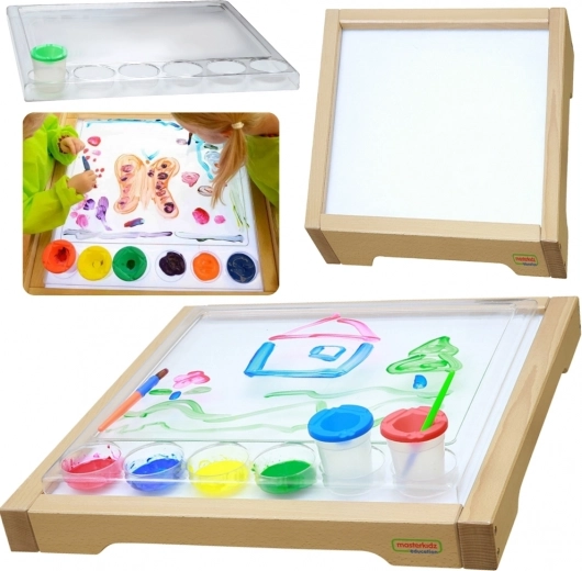Het houten sensorische frame van Masterkidz met LED‑paneel is ontworpen om creativiteit te stimuleren en leren te ondersteunen via het STEM‑systeem. Verlichte LED‑lampen zorgen voor fascinerende lichteffecten door verschillende materialen zoals bladeren, papier of zand. Inclusief een transparant schilderbakje dat kinderkunstwerken extra tot hun recht laat komen.