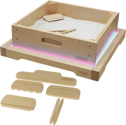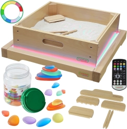 Het paneel is uitgerust met een 1,5 m lange kabel en is een perfect hulpmiddel voor het creëren van geweldige lichteffecten met bijvoorbeeld bladeren, papier of een zandlade. Een sensationele aanvulling zijn ook de gekleurde stenen, die de zintuiglijke waarnemingen nog verder ontwikkelen.