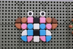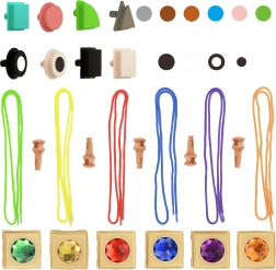 • - 64 geometrische pinnen (4 vormen, 6 kleuren)
