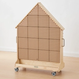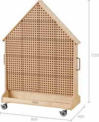 Het STEM-bord in de vorm van een huis biedt maximale gebruiksflexibiliteit, het kan overal worden geplaatst. Dankzij wieltjes met blokkering is verplaatsen eenvoudig en snel. Het bord is dubbelzijdig, zodat kinderen kunnen deelnemen aan verschillende educatieve activiteiten of in kleinere groepen kunnen werken.