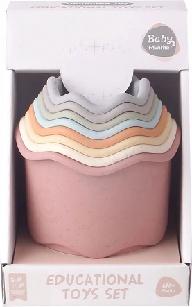 Vrolijke stapeltoren van 8 bekers met golfjes. Perfect speelgoed voor de ontwikkeling van motoriek en creatief speelplezier.