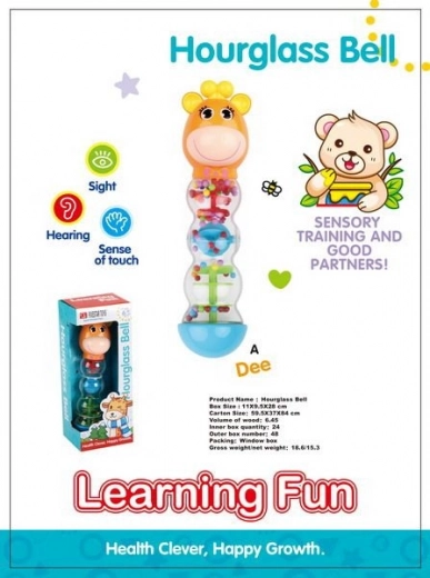 Deze rammelaar in de vorm van een giraf is niet alleen een geweldig speeltje voor je kind, maar helpt ook bij de ontwikkeling van zijn of haar zintuiglijke vaardigheden. Dankzij de zandloper-/doorstrooifunctie en de opvallende kleuren houdt hij de aandacht van het kind lange tijd vast.